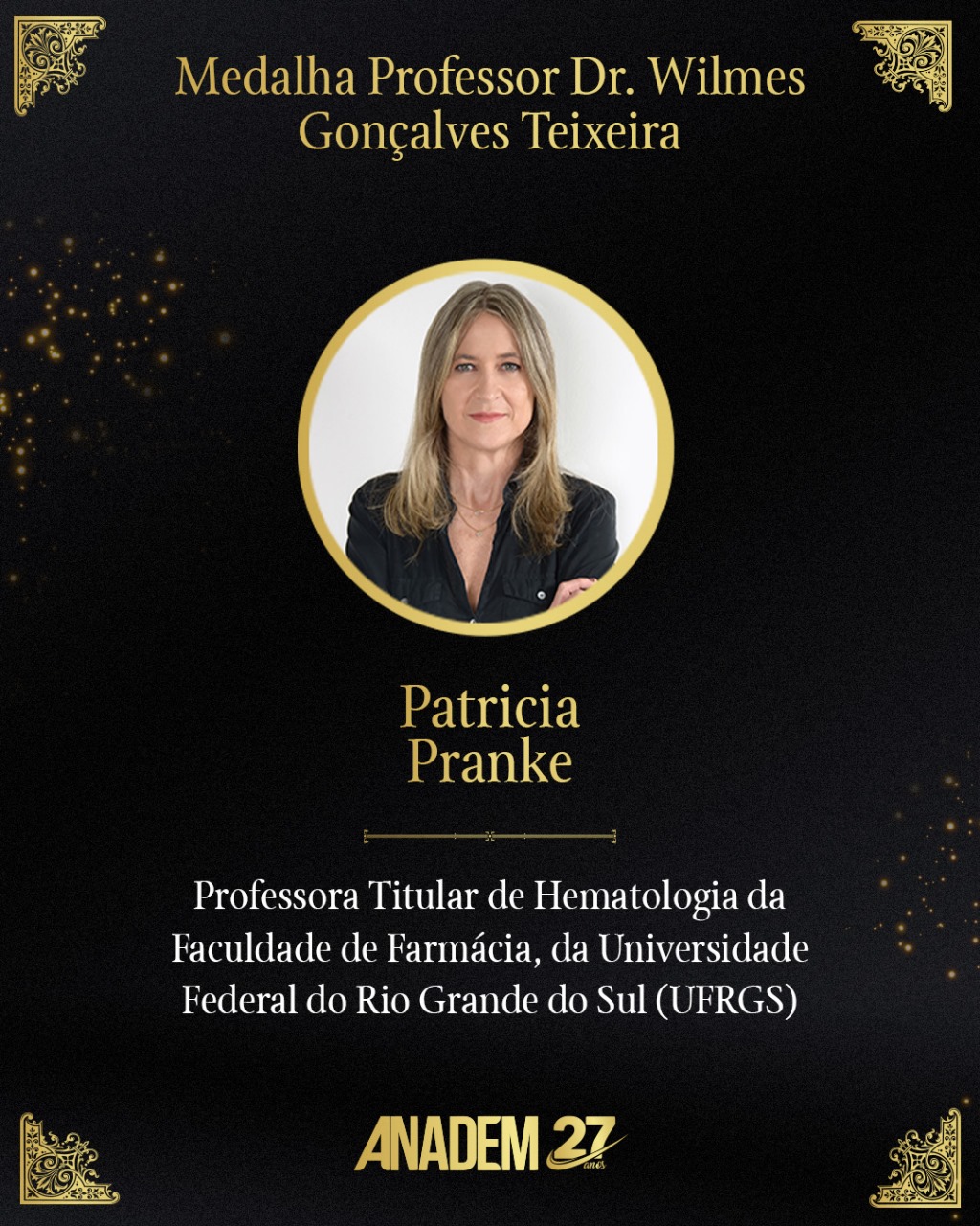 ANADEM concede Medalha Wilmes Teixeira à Dra. Patricia Pranke por contribuições à ciência